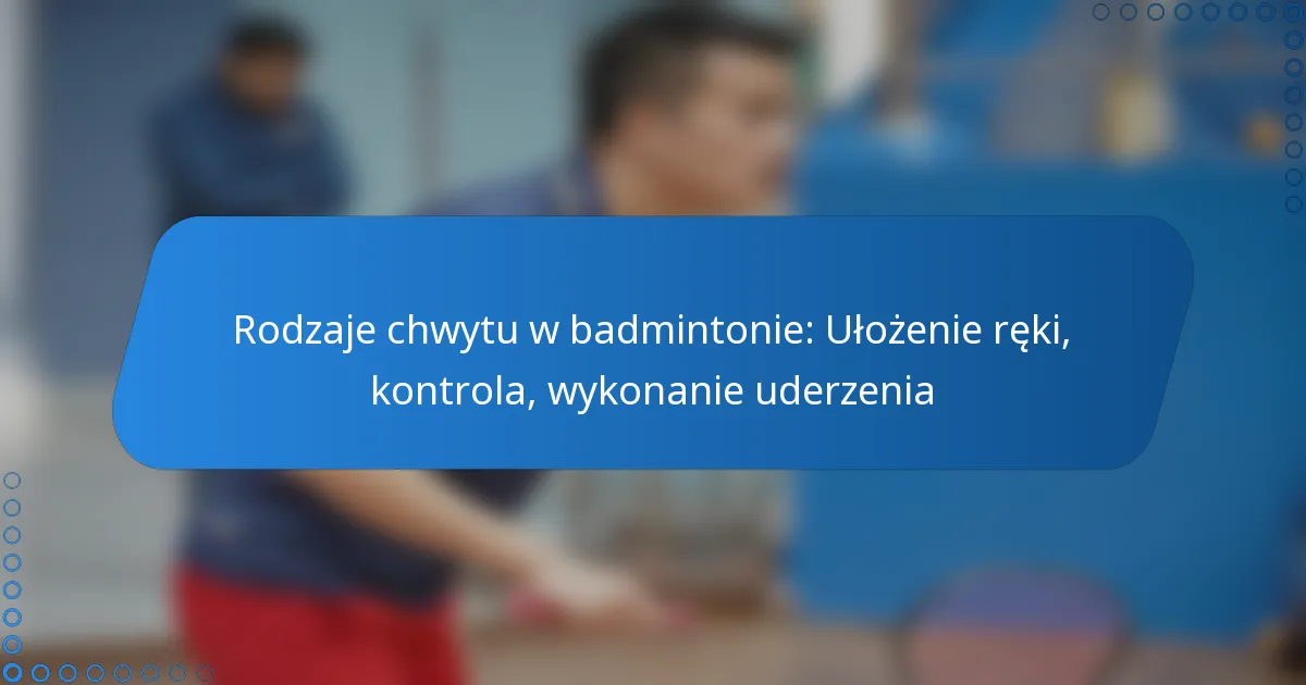 Powszechne typy uchwytów w badmintonie to uchwyt podstawowy, uchwyt forhendowy i uchwyt bekhendowy. Każdy typ ma swoje specyficzne zastosowanie i jest dostosowany do różnych uderzeń, wpływając na to, jak skutecznie gracz może uderzyć lotkę. Zrozumienie tych uchwytów jest kluczowe dla graczy, którzy chcą poprawić swoją technikę i ogólną grę.